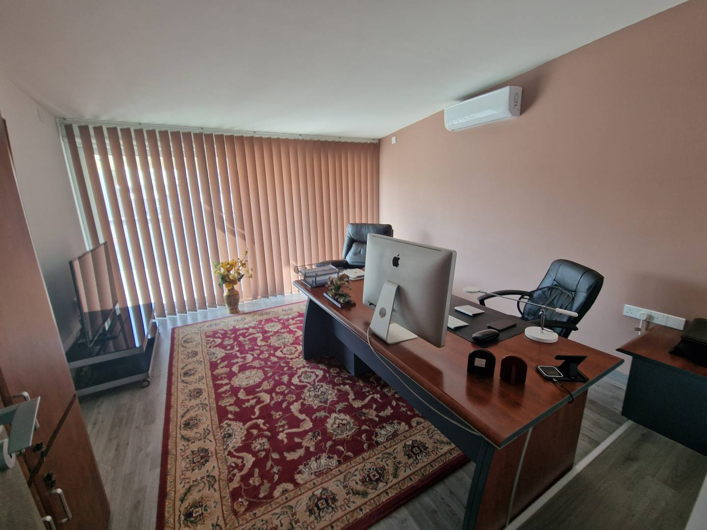 For rent office space with a city views located on Christaki Kranou street in Germasogeia, with easy access to the highway and withing walking distance to all kind of amenities. The covered area is 165 sq. m and it consists of a reception area, an open-plan space, separate office, meeting room, 2 Wc, separate kitchen and storage room. The office is semi-furnished, with air conditoning system, laminate raised floor, double glazed windows, provision for alarm system and 3 uncovered parking places. Also there is a common roof garden with a smoking area.